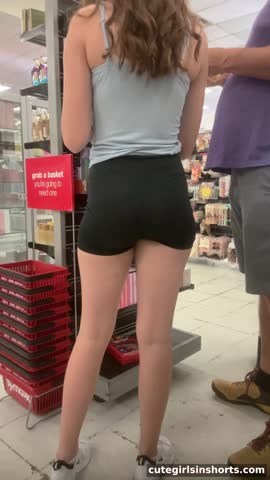 Brunette In Black Shorts Teen Girl Candid Shopping