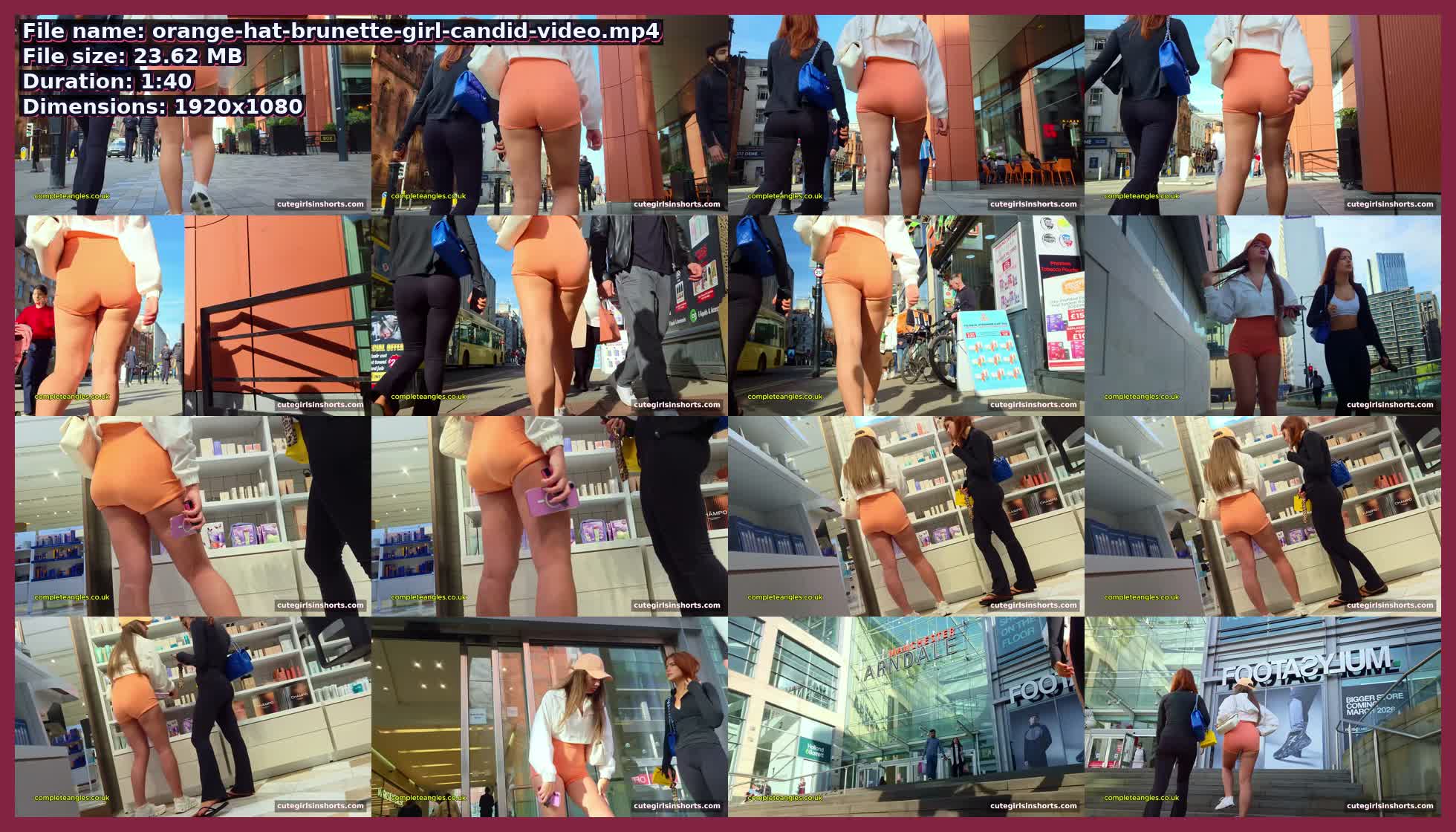 Orange Hat Brunette Girl Candid Video | Cute Girls in Shorts