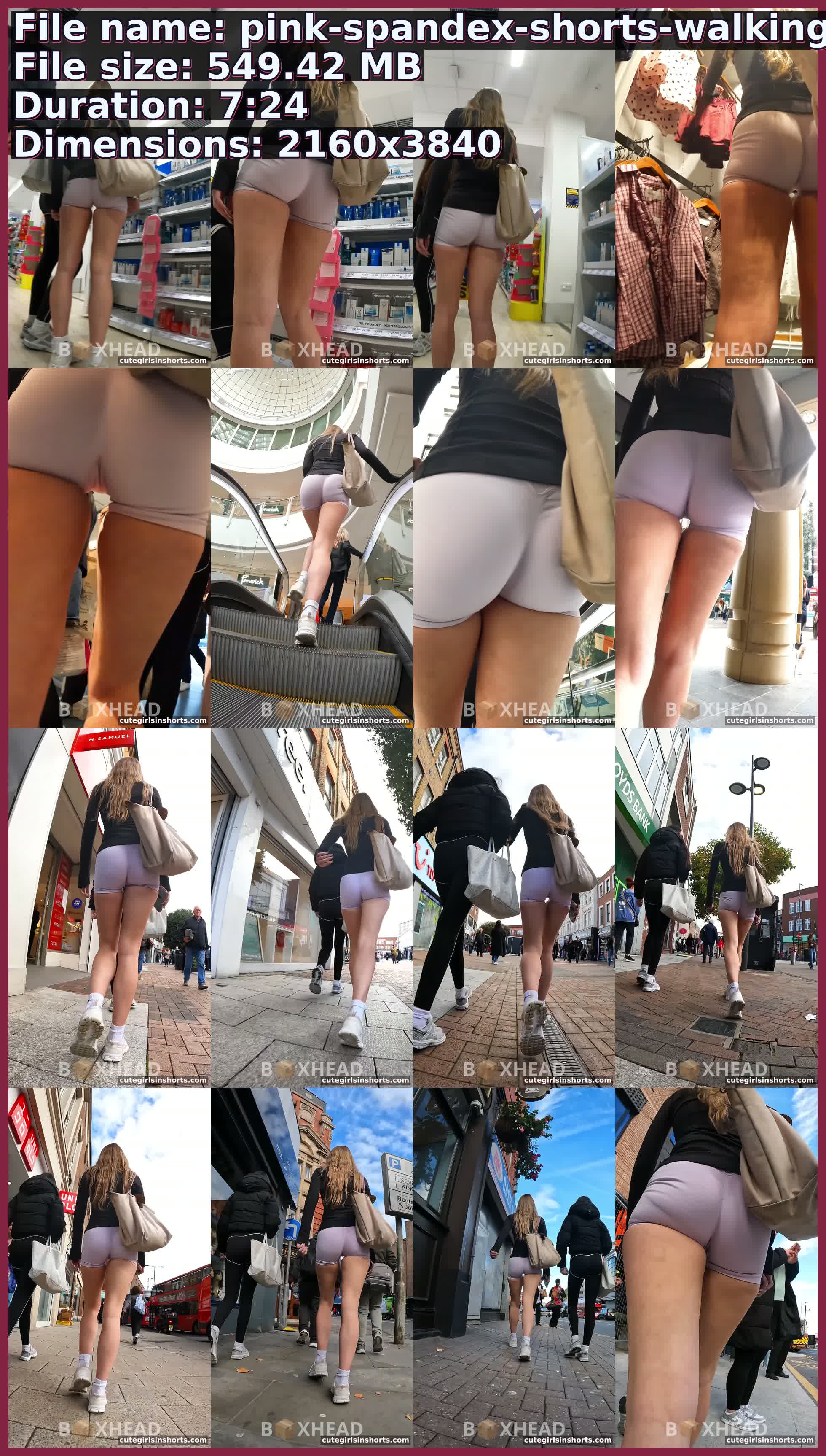 Pink Spandex Shorts Walking Brunette Russian Girl Candid