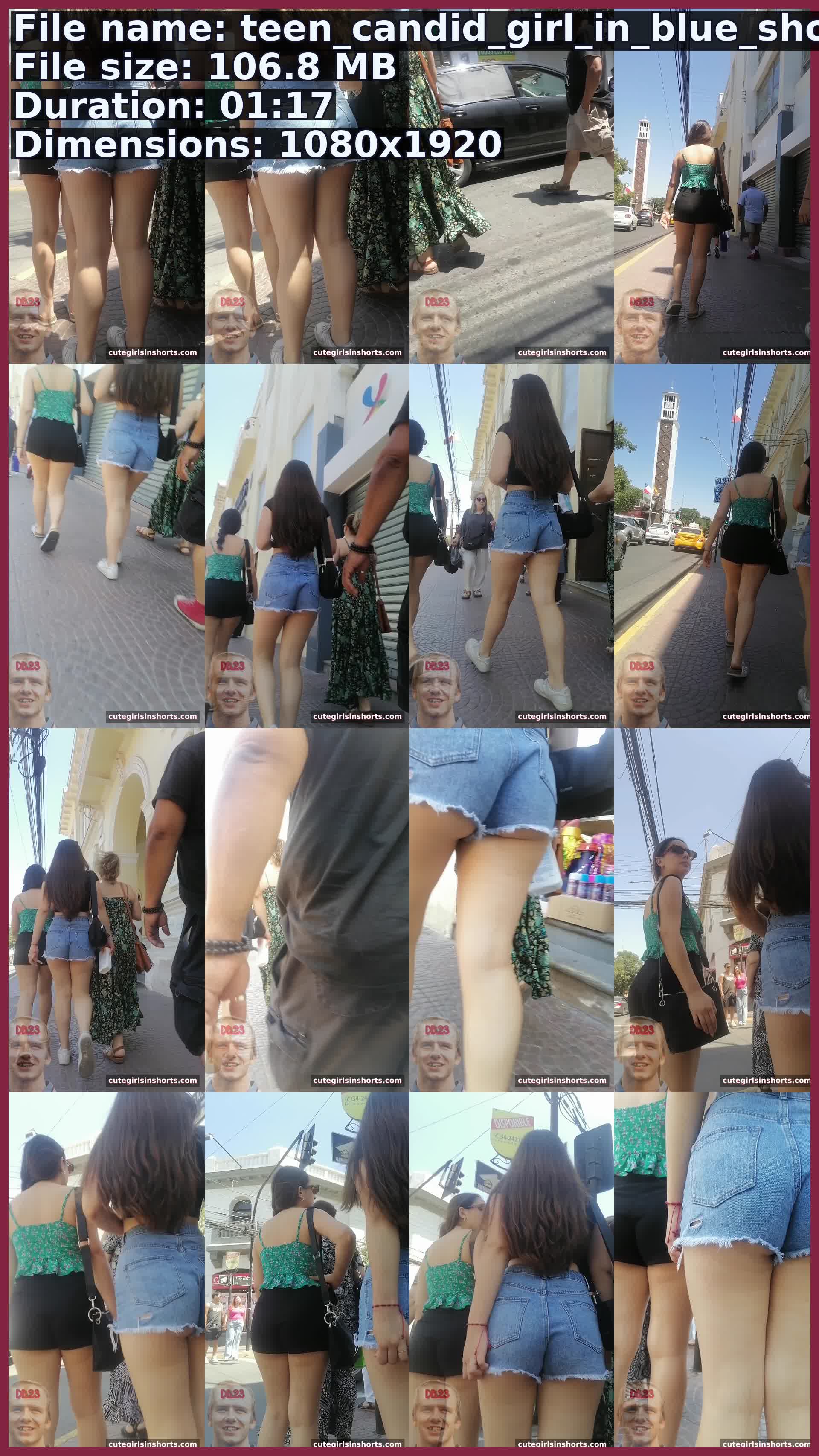Teen Candid Girl In Blue Shorts Brunette